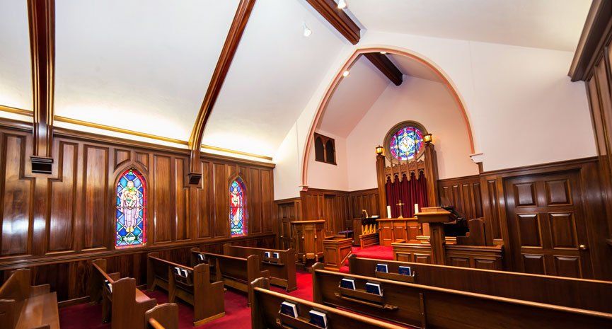 Our chapel is a stunning stained-glass sanctuary with vaulted ceilings that create a warm, reverent atmosphere for your ceremony. The seating comfortably accommodates your guests, while the adjoining reception and gathering areas offer generous space for celebrating—easily customizable to reflect your personal wedding style and décor.